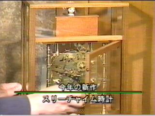 理論的には難しいんですが、挑戦しようと言うことで やりました。最初はなかなか動かんで四苦八苦しました。 これは今年の新作ですね。こういう風に、チャイムが鳴りながら 女の子が演奏するというカラクリ時計です。 楽しい時計ですね 21個あるわけですね。 毎年1個1個それぞれ思い出があります |