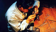 手作りの難しさが佐藤さんを悩ませました。 季節によって、そして時によってその配置を換えていく自然。太古から人は時を計るために天体を観測してきました。 「宇宙の営みによって1年365日が決まる、それが1ヶ月、1日、24時間に。 考えてみりゃあ、宇宙のその大きな動きが、あのぉ・・・・・それを刻々と刻むのが、まあ、時計、時間ですね。 」時計職人の佐藤さんが月の写真に魅せられ、夜空に目を向けるようになったのも運命だったのかも知れません。 次へ→ |