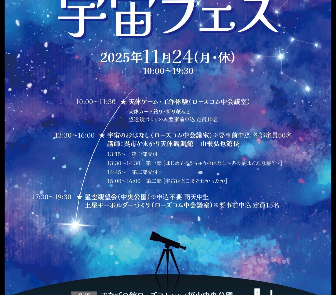 13:30~16:00 ★ 宇宙のおはなし (ローズコム中会議室) ※要事前申込 各部定員50名